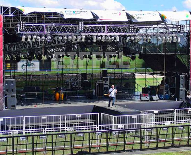 Nuestro servicio de alquiler de escenarios le permite adaptar cada montaje a las necesidades específicas de su evento. Contamos con un sistema multidireccional que brinda máxima flexibilidad y rapidez en el armado, asegurando un resultado profesional y seguro.